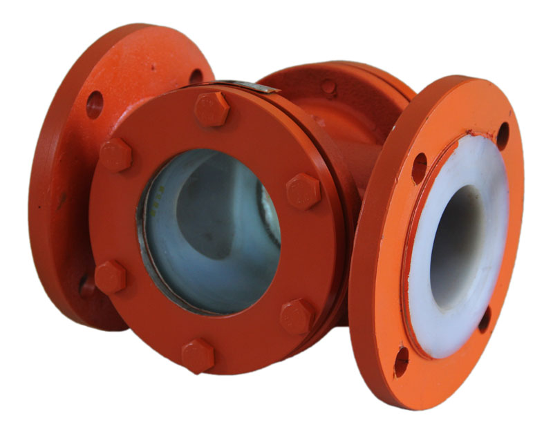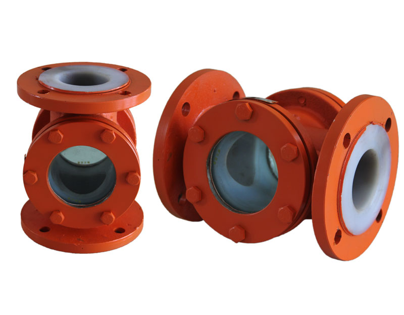 襯氟視鏡又名襯里視鏡,國家執(zhí)行標準(HG/T21622-1990).用以觀測管路或設備中單元流體的流量、色澤、氣泡、結晶情況,直接監(jiān)控化工工藝流程,有利于指導操作。視鏡體采用碳鋼精鑄,內襯氟塑料(F46), 鏡片選用優(yōu)質鋼化玻璃,具有的耐腐蝕性能和機械強度,且有外型美觀、強度高、經(jīng)久耐用的特點。廣泛使用于石油、化工、農藥、染化、制酸制堿等行業(yè),是目前防腐設備理想的選擇。